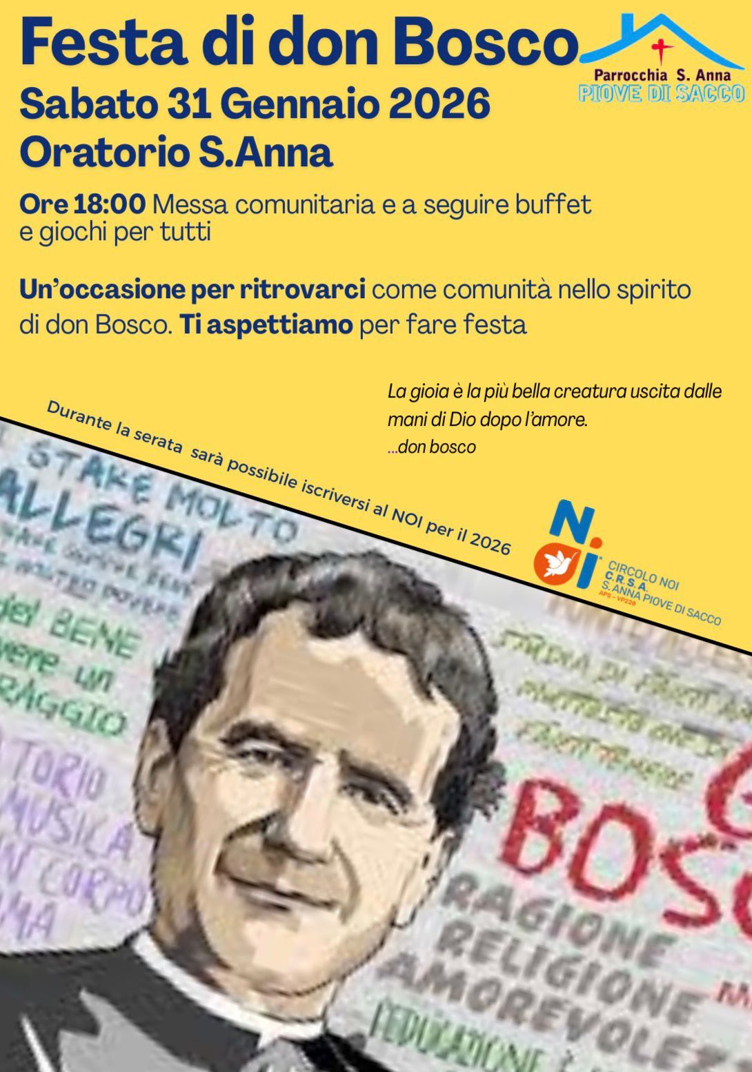 SABATO 31 GENNAIO … nella festa di S. Giovanni Bosco: momento di festa per quanti in parrocchia svolgono un qualche servizio.